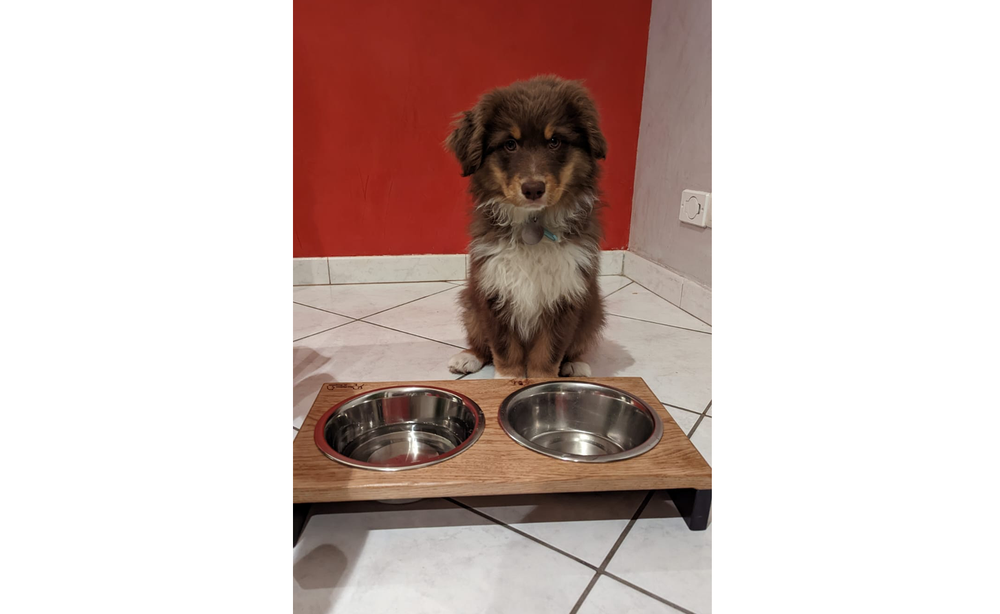 « Très beau produit, expédié rapidement et soigneusement ! Pogo est déjà fan de son porte-gamelle, qui rend très bien dans le salon ! C'est vraiment très chouette et de belle qualité, merci Victor ! »